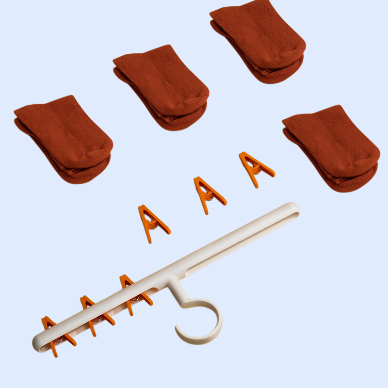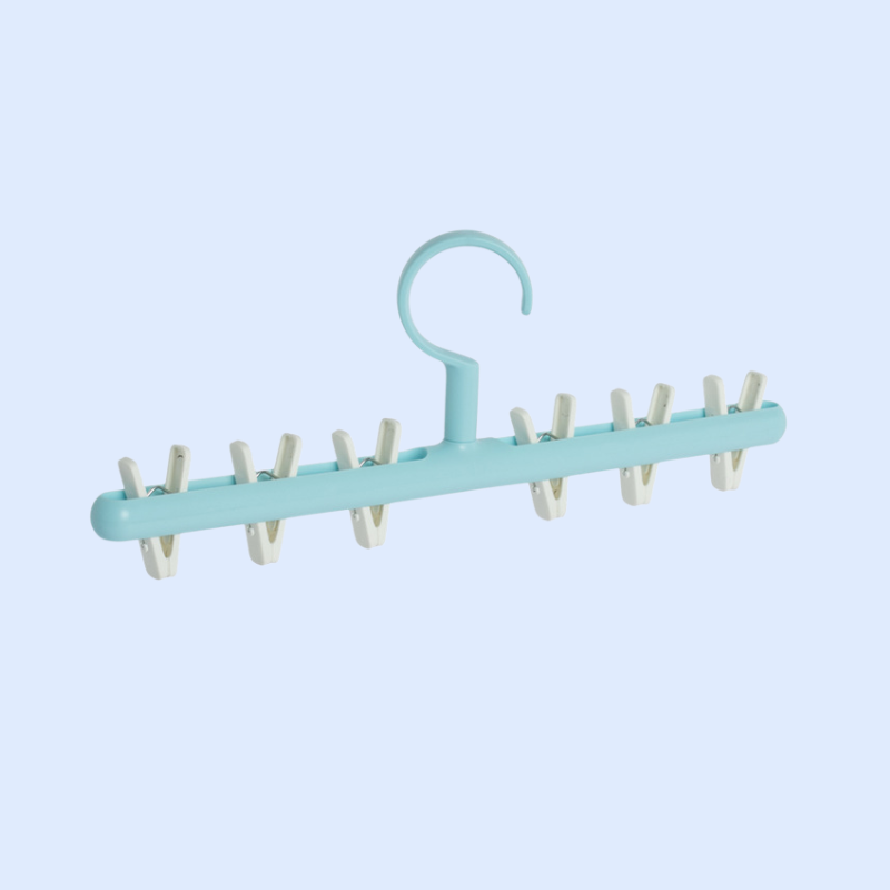 강력한 집게로 꼬임 방지, 양말·바지 등 다양한 의류 건조에 적합한 다용도 행거. 공간 절약과 효율적 건조 가능.
